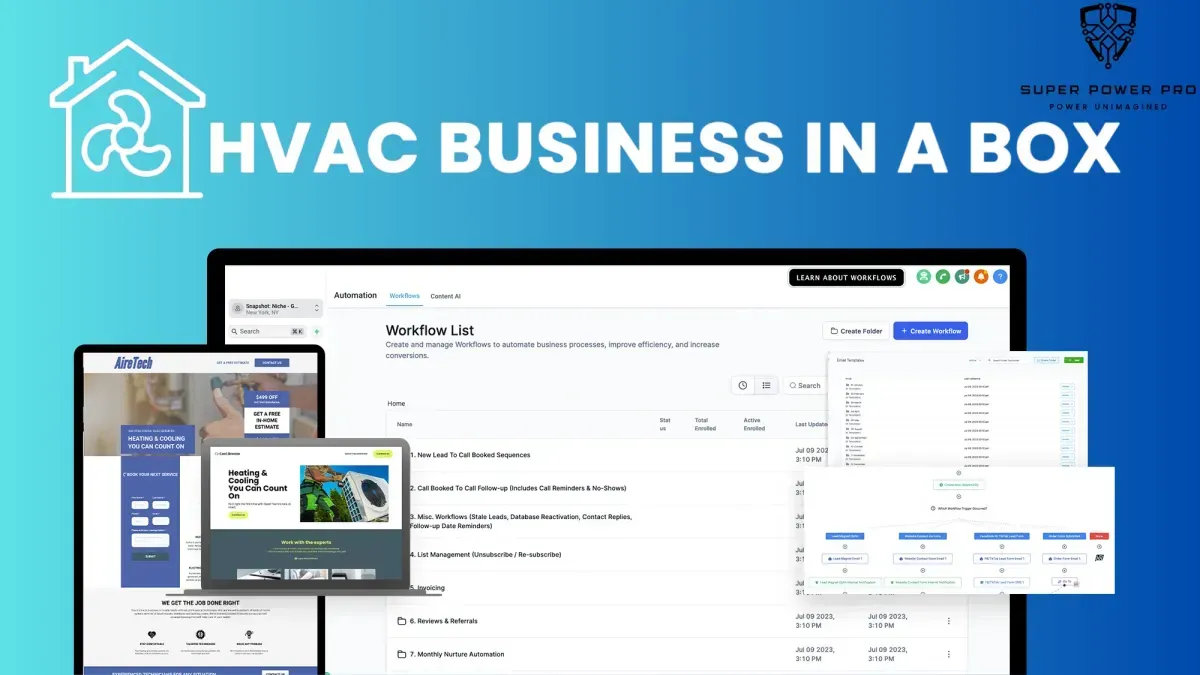 When it comes to workflows, this business-in-a-box leaves no marketing stone unturned. You’ll have everything you could need to capture new leads, persistently deliver value, guide them toward a sale, and then ascend them to become a 5-star review and avid referrer. Workflows include: