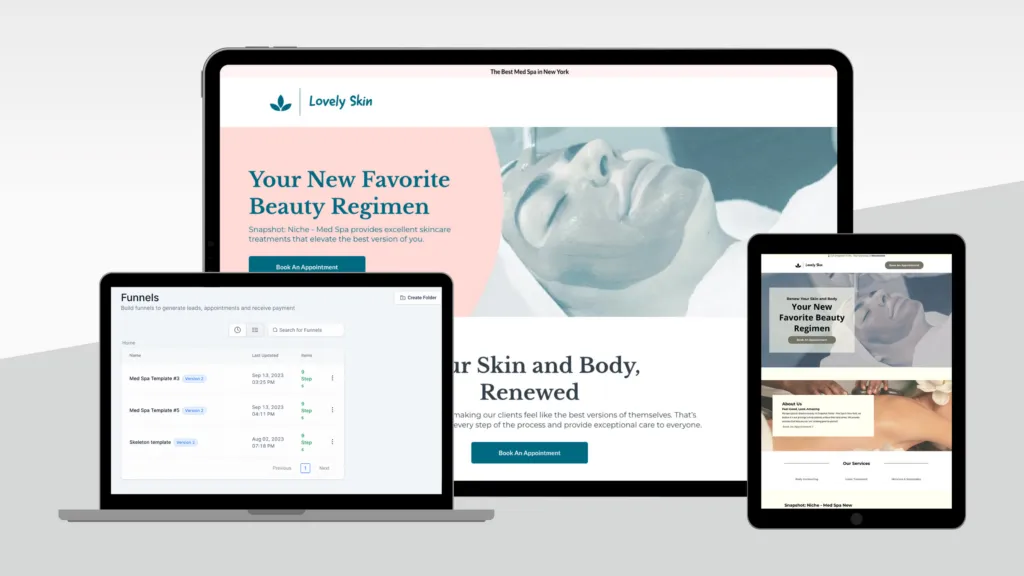 The Epic Med Spa Snapshot is designed to predictably capture strangers, nurture prospects, and convert customers into promoters. With this comprehensive snapshot, you can deliver a solution for Med Spas that surprises and delights.